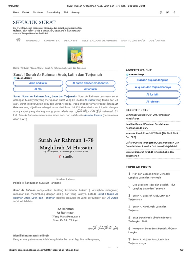Download Surat Ar Rahman Dan Terjemahannya - Bagi Contoh Surat