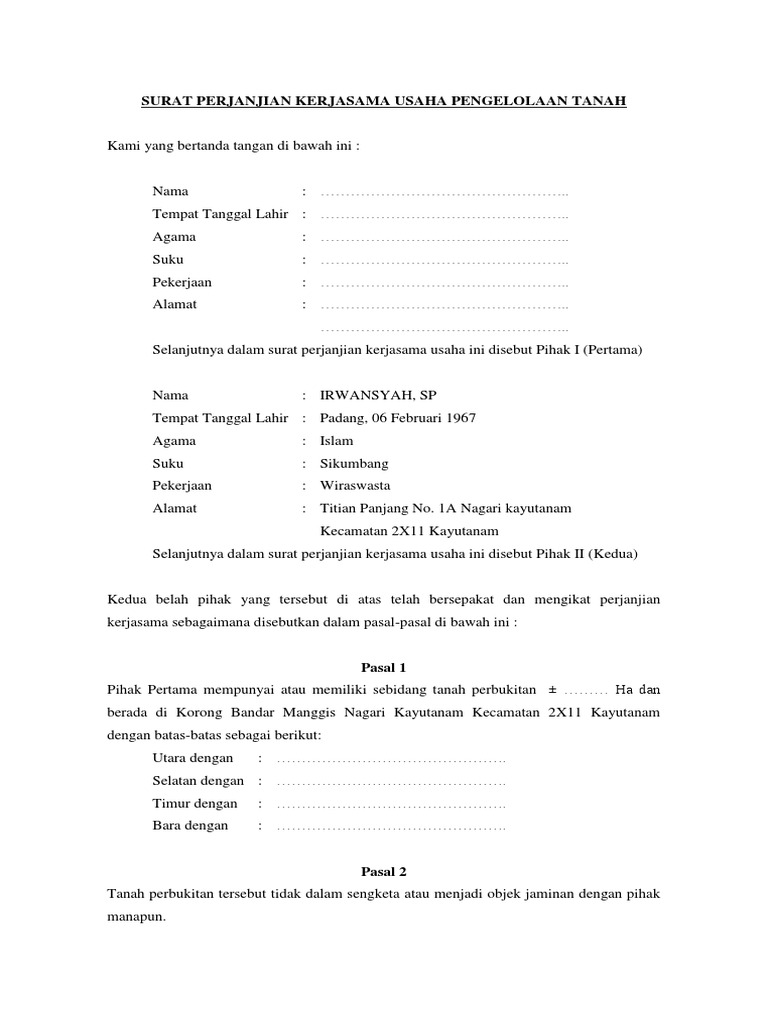 DOC) SURAT PERJANJIAN KERJASAMA USAHA | ifado alif - Academia.edu