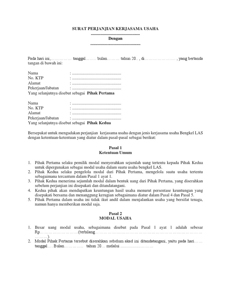 contoh surat perjanjian kerjasama modal usaha | Investasi, Surat …