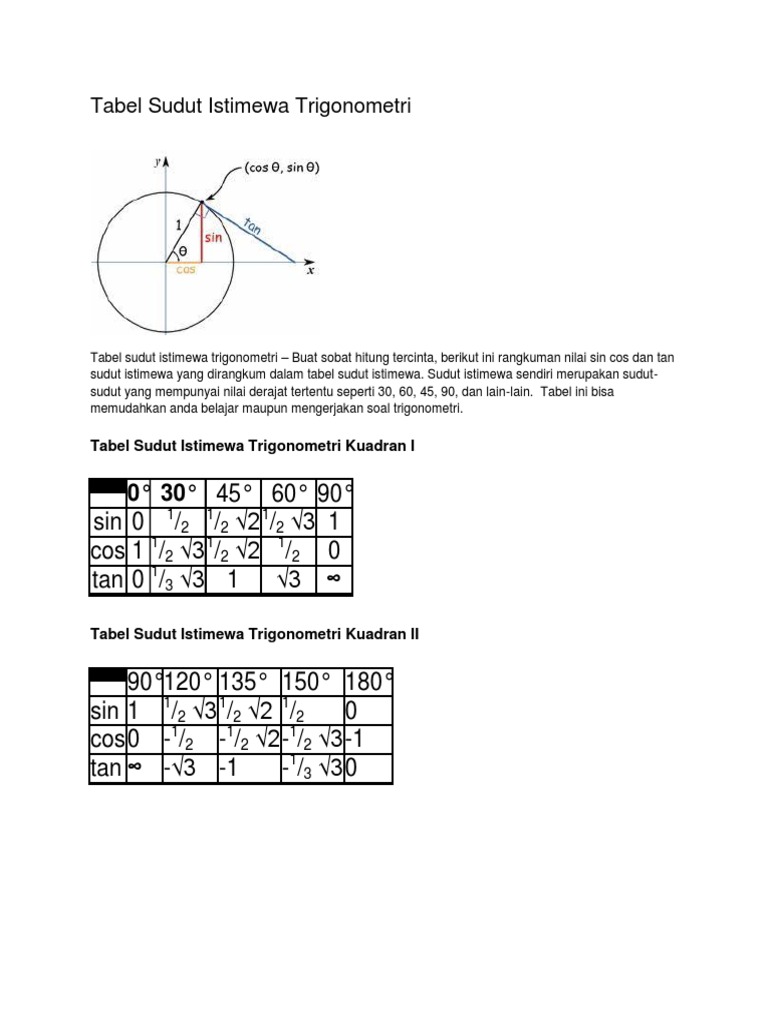 Tabel Trigonometri Sudut Istimewa Sin Cos Tan [Lengkap] - Pendidikan Indonesia