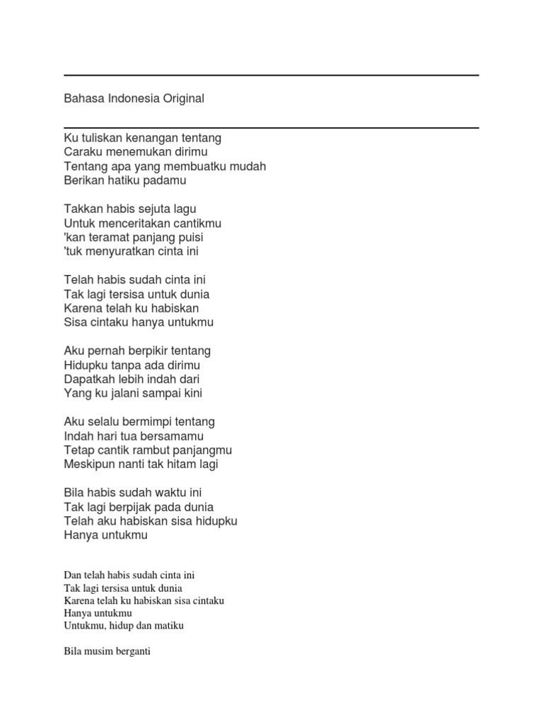 Takkan Habis Sejuta Lagu Untuk Menceritakan Cantikmu - Sejatinya …
