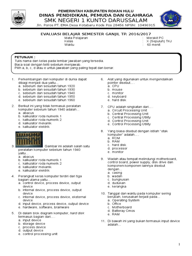 SOAL MPC KELAS X TKJ