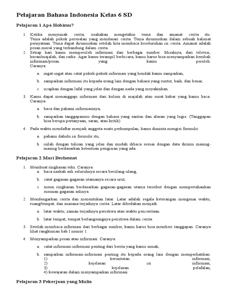 Pelajaran Bahasa Indonesia Kelas 6 SD.doc