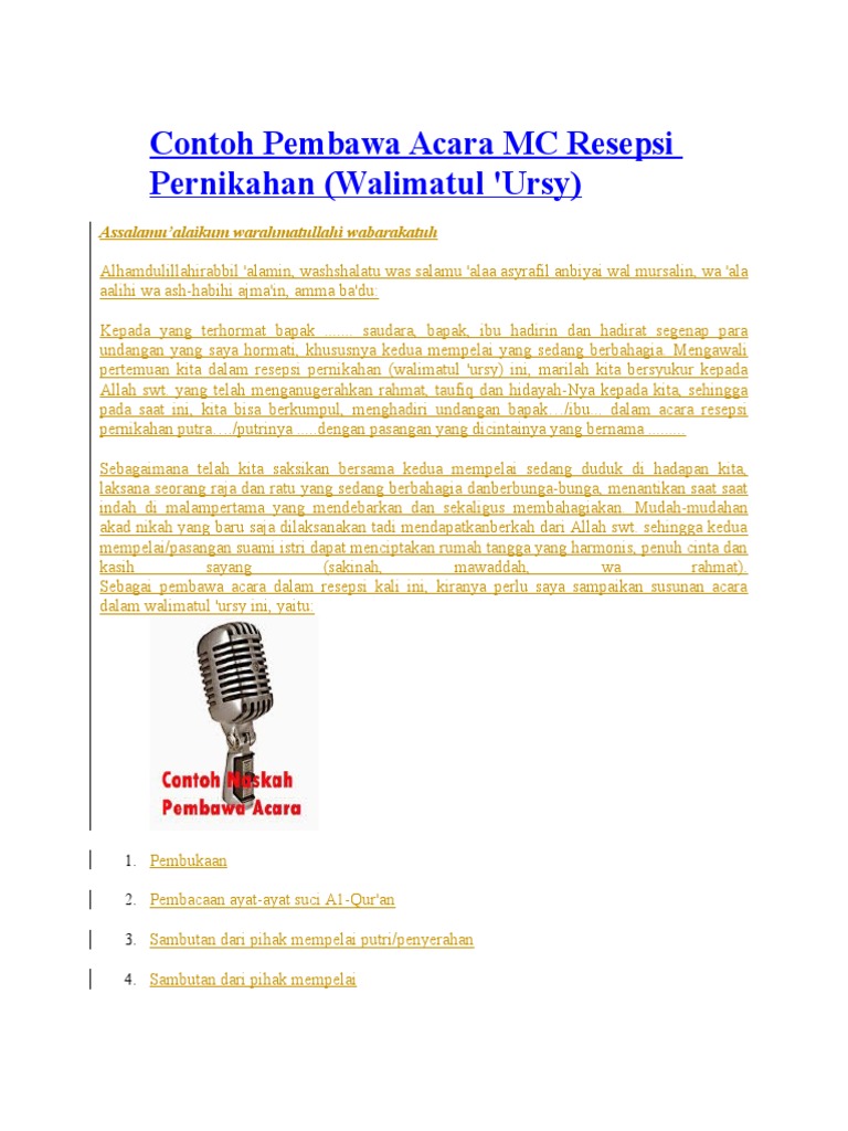 Belajar MC Nikah Pembukaan Contoh Naskah MC Nikah Bahasa Indonesia …