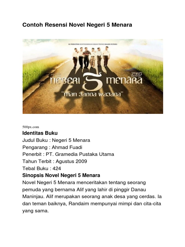 Contoh Teks Ulasan Novel Negeri 5 Menara Terkait Teks – Resep Kuini