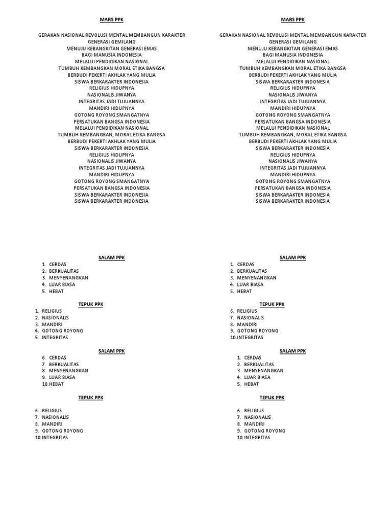 Instrumen Dan Lirik Mars Ppk Siswa Berkarakter Indonesia - Cute766
