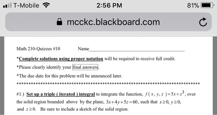 Solved: T-Mobile 2:56 PM 81% 1 A Mcckc.blackboard.com Math …