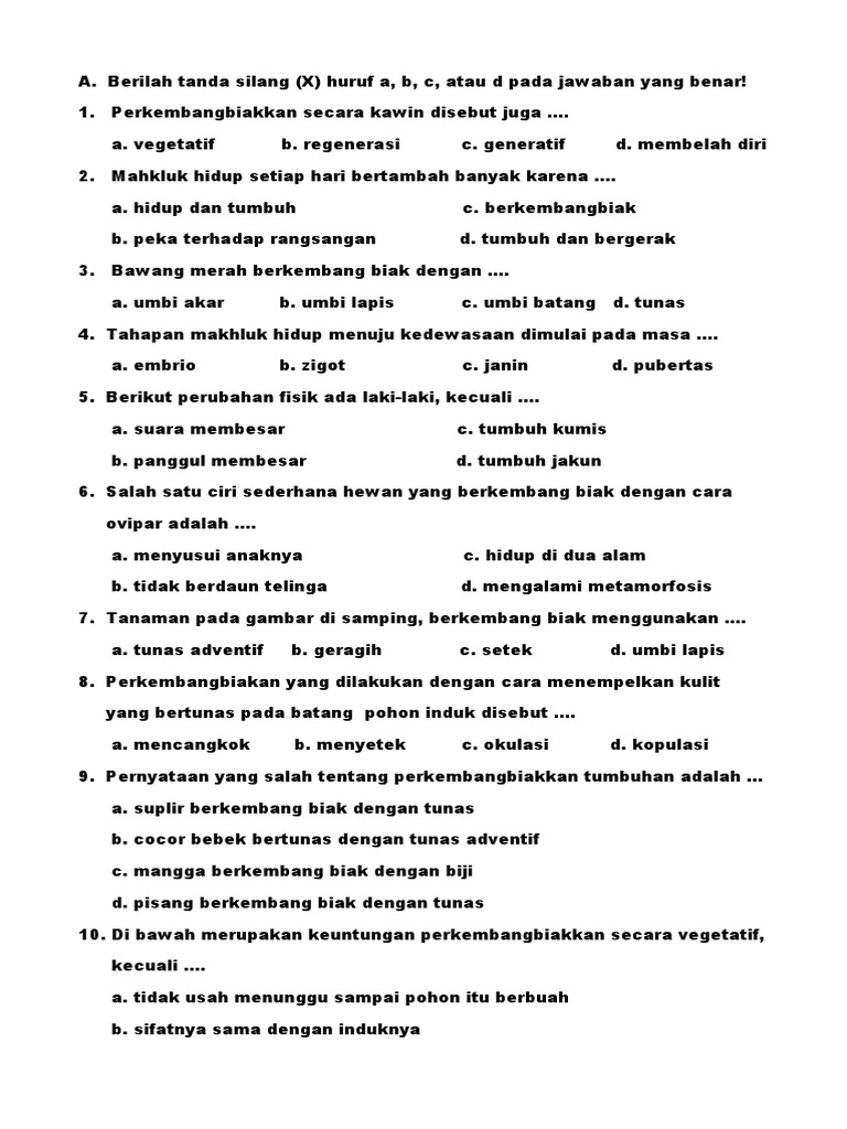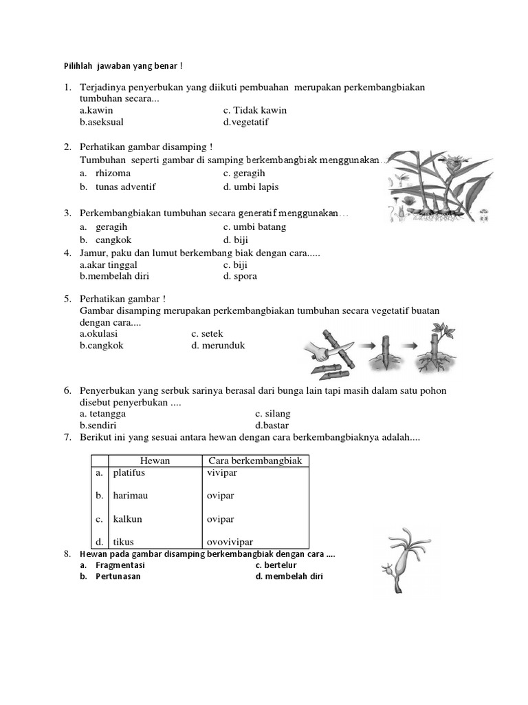 15+ Soal usbn tentang perkembangbiakkan hewan/tumbuhan beserta …