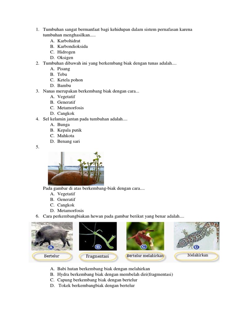 Kumpulan Soal dan Materi SD: Soal Perkembangbiakan Makhluk Hidup …