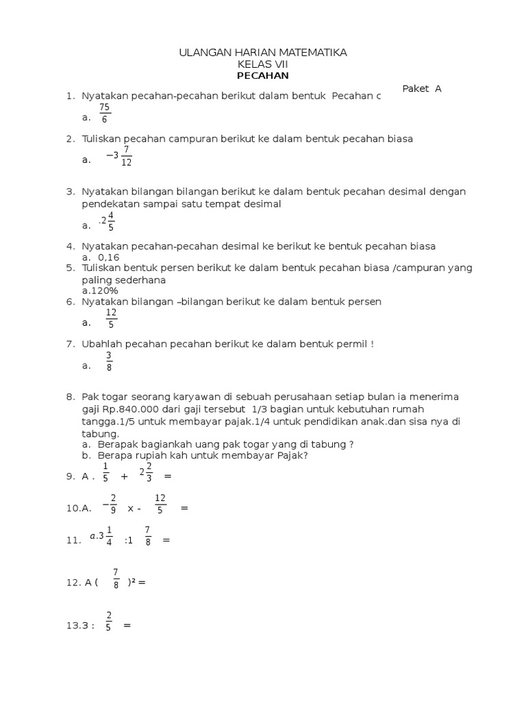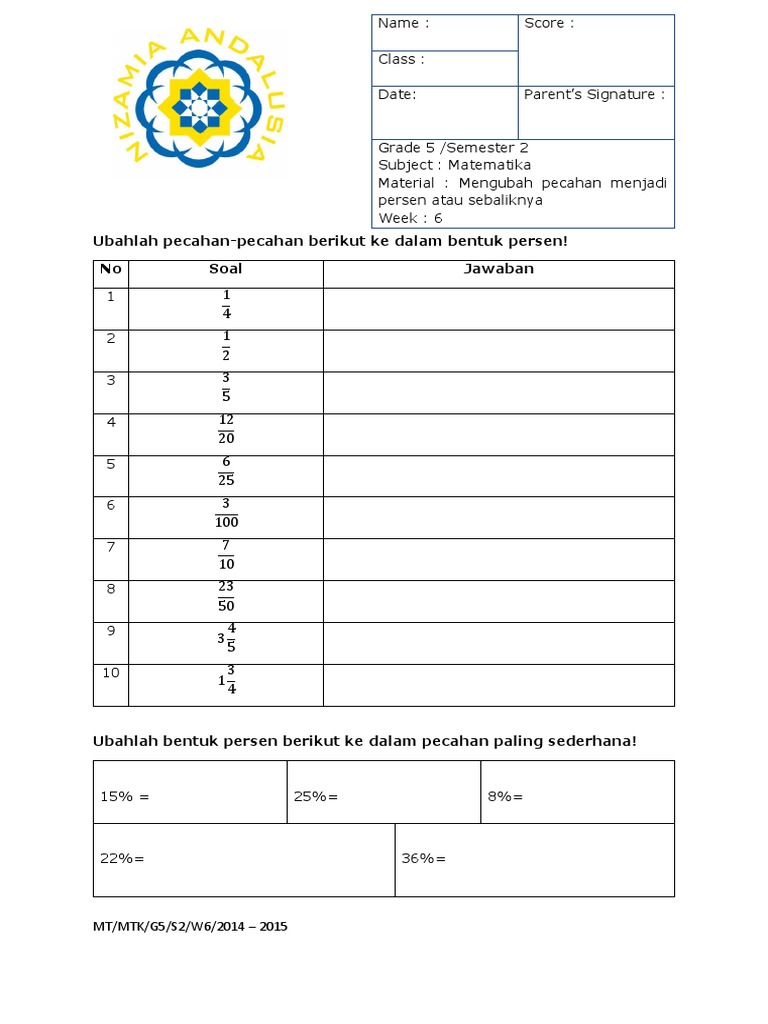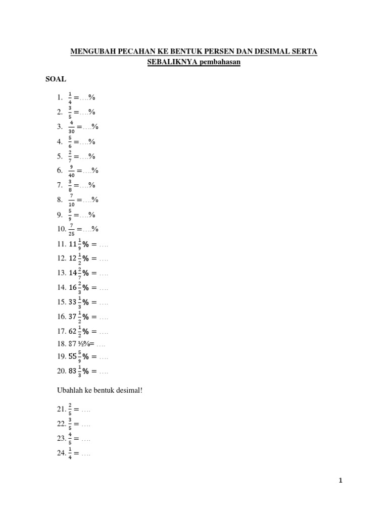 Contoh Soal Pecahan Biasa Ke Persen | Kumpulan Soal pelajaran 8