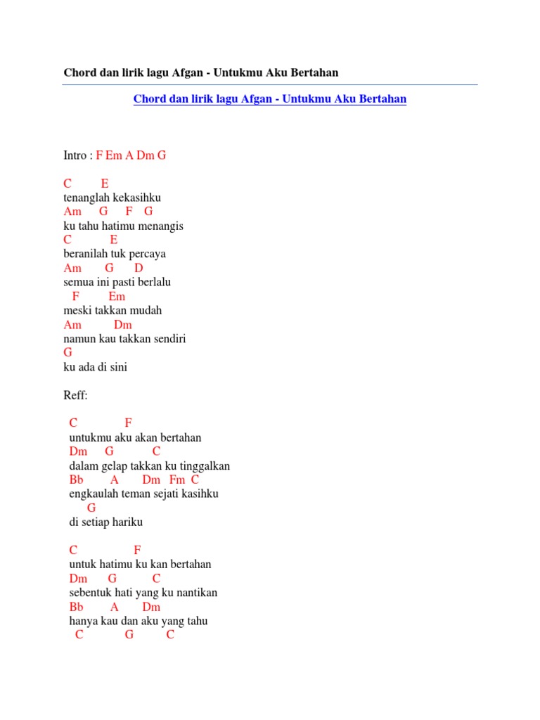 Chord Untukmu Aku Bertahan By Afgan | Chordlicious