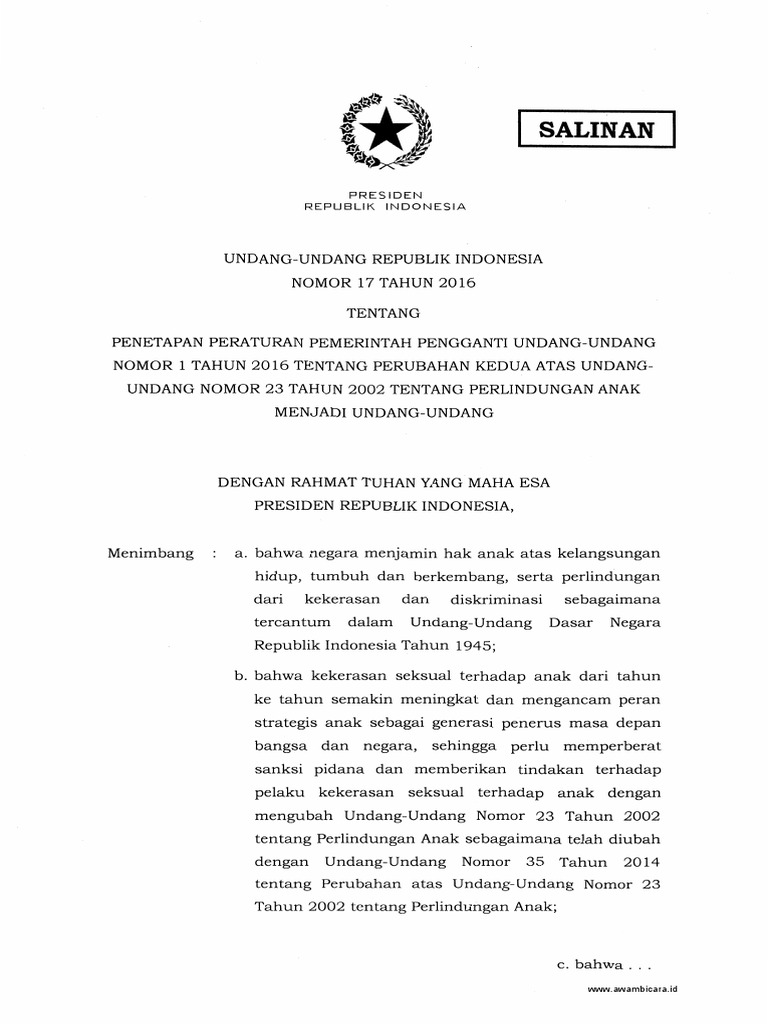 UU Nomor 17 Tahun 2016, Undang-Undang Baru Perlindungan Anak …