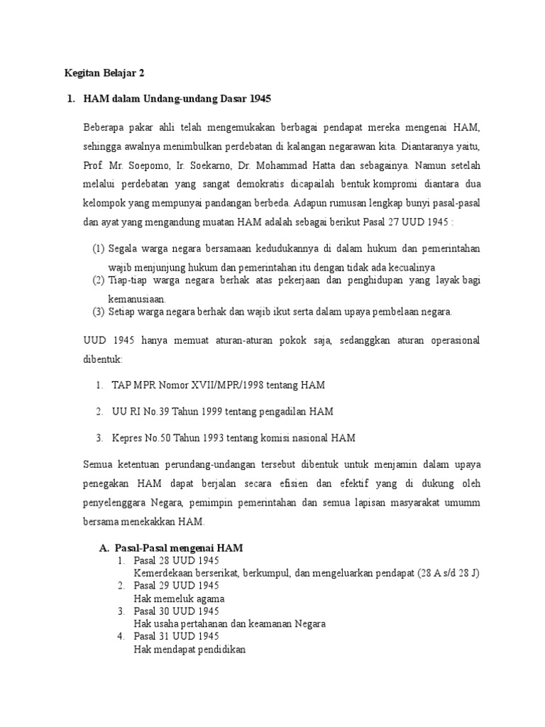 Kegitan Belajar 2 1. HAM dalam Undang-undang Dasar 1945