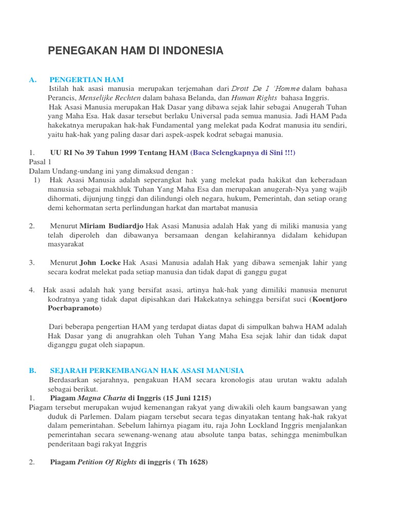 DOC) A . PENGERTIAN PELANGGARAN HAK ASASI MANUSIA : Menurut Pasal …