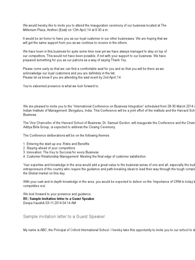 Guest Speaker Invitation Letter - Sample Invitation Letter
