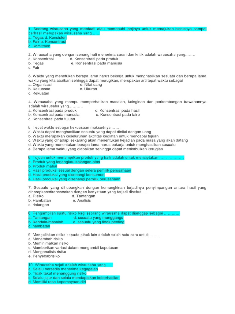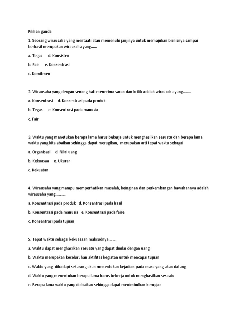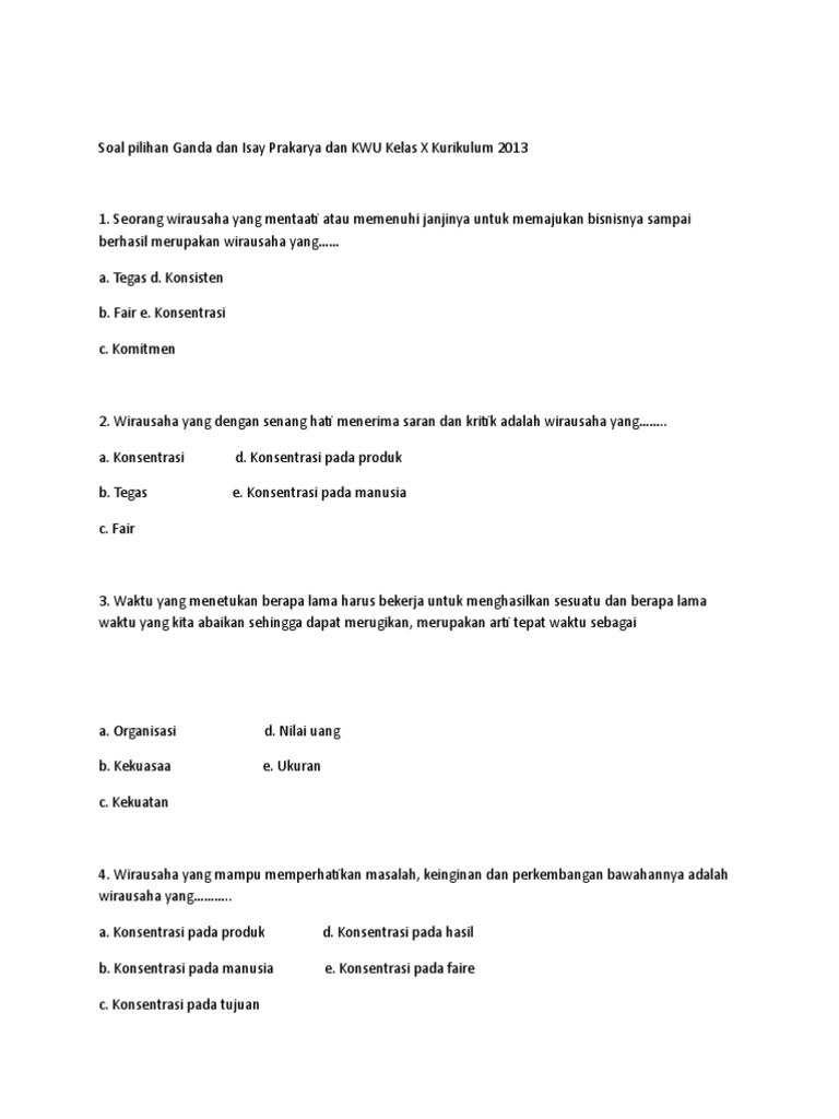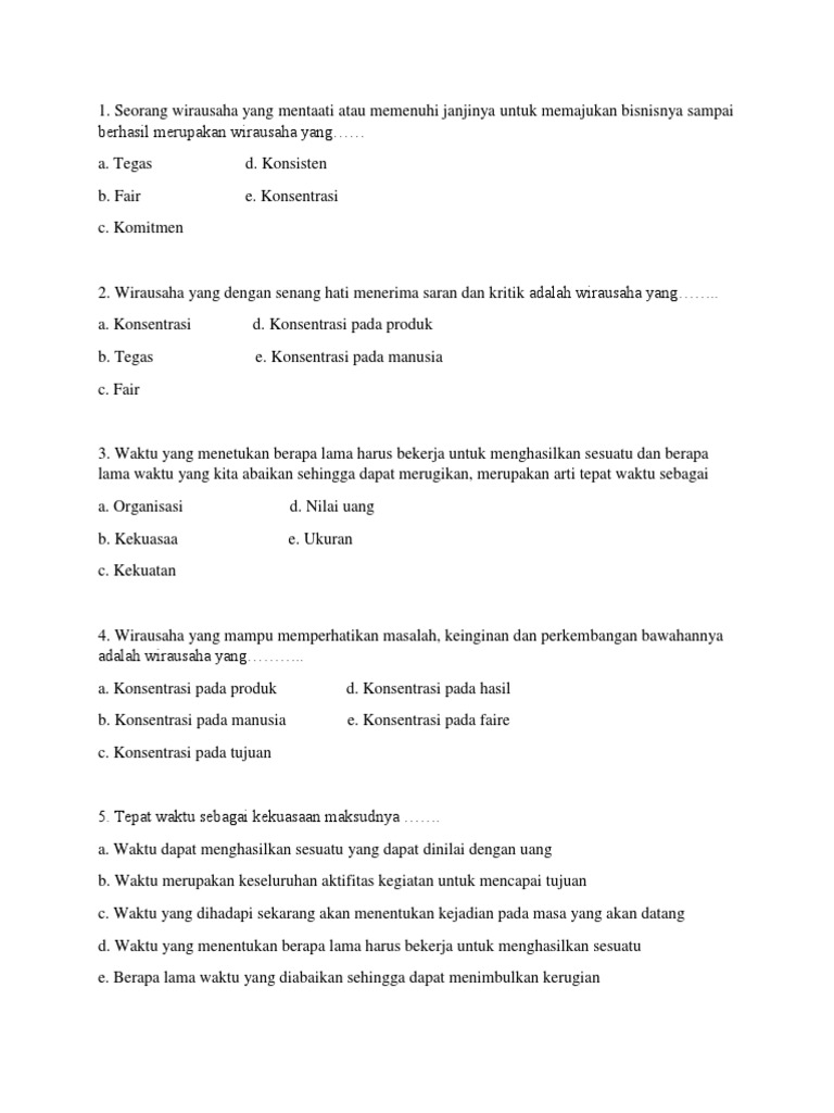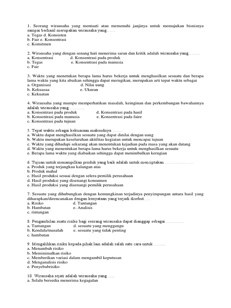Soal Kewirausahaan kelas X