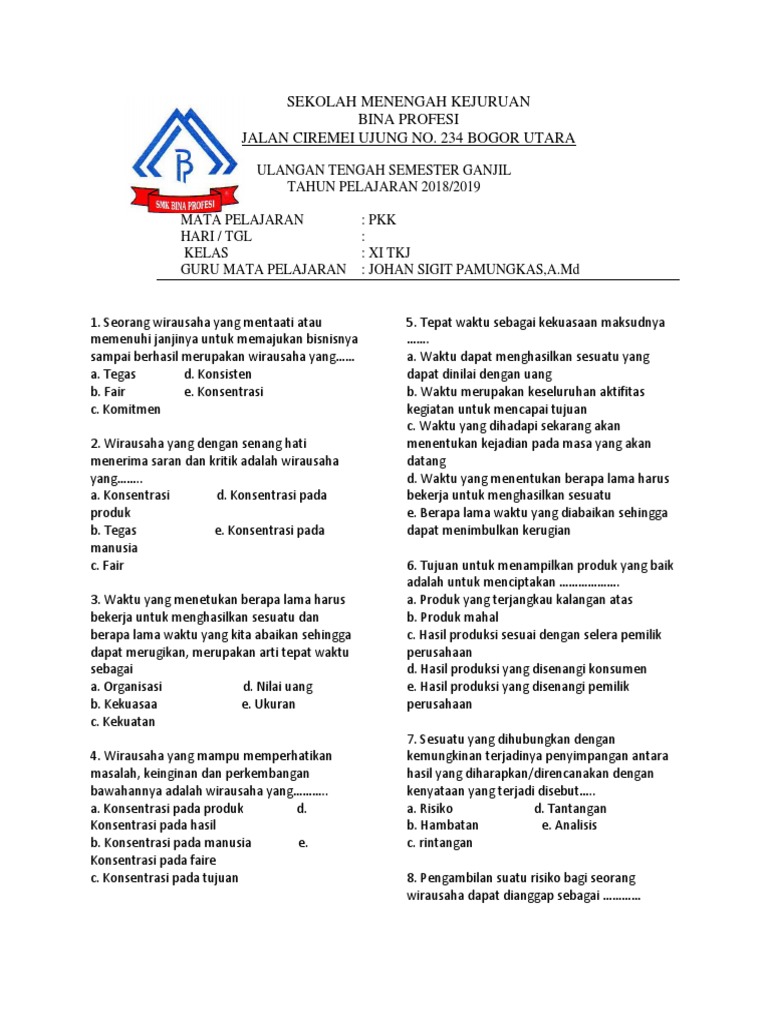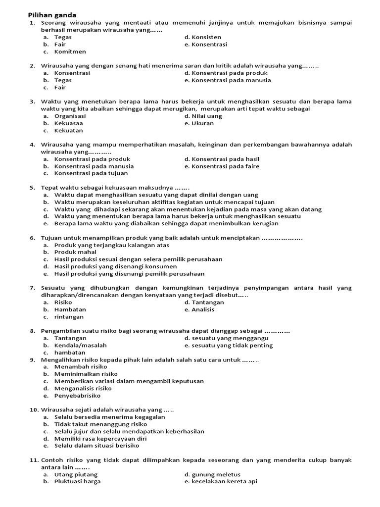 DOC) Pilihan ganda soal kelas XI | Darsono Wirausaha - Academia.edu