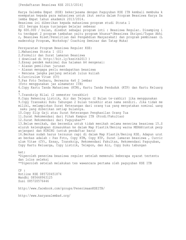 BEASISWA KSE (KARYA SALEMBA EMPAT) – Beasiswa dan Finansial, HMTG …