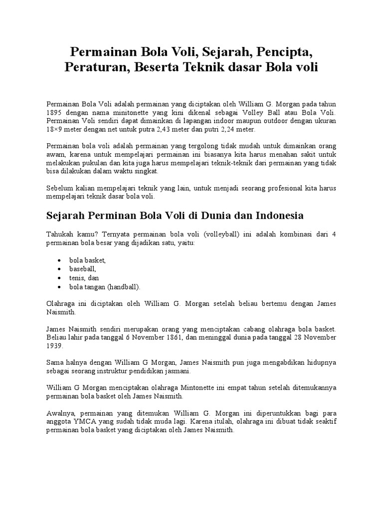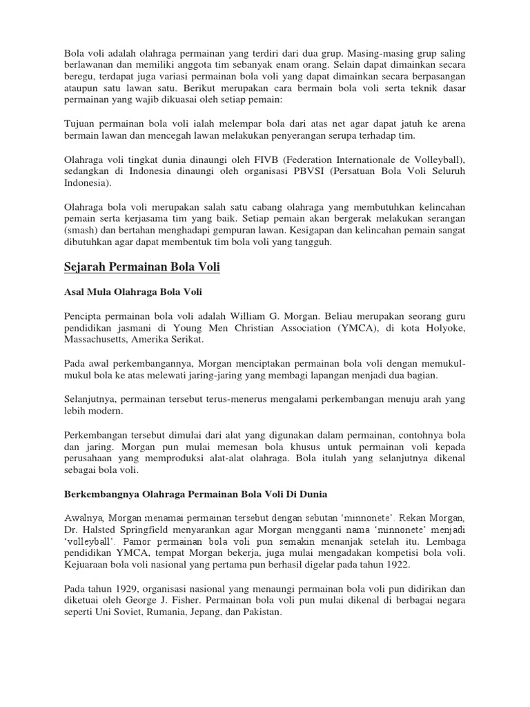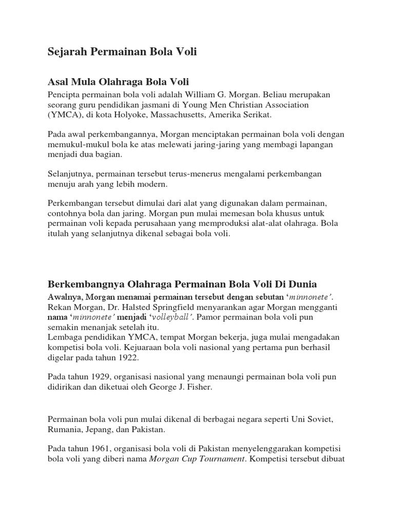 DOC) Sejarah Permainan Bola Voli | Nora Hidayati - Academia.edu