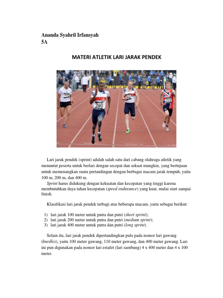 Materi Atletik Lari Jarak Pendek: Ananda Syahril Irfansyah 5A