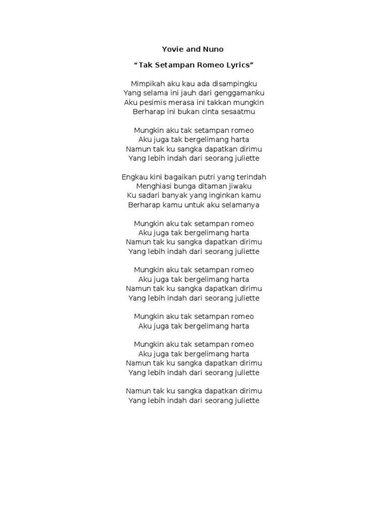 Aries Kurniawan on Twitter: “Mungkin Aku Tak Setampan Romeo =-s Aku Juga Tak Bergelimang Harta =]y… ♫ Tak Setampan Romeo by Yovie & Nuno — https://t.co/lNzXpsgRCf”