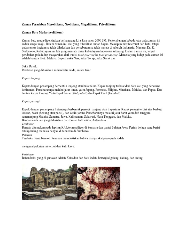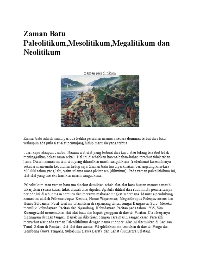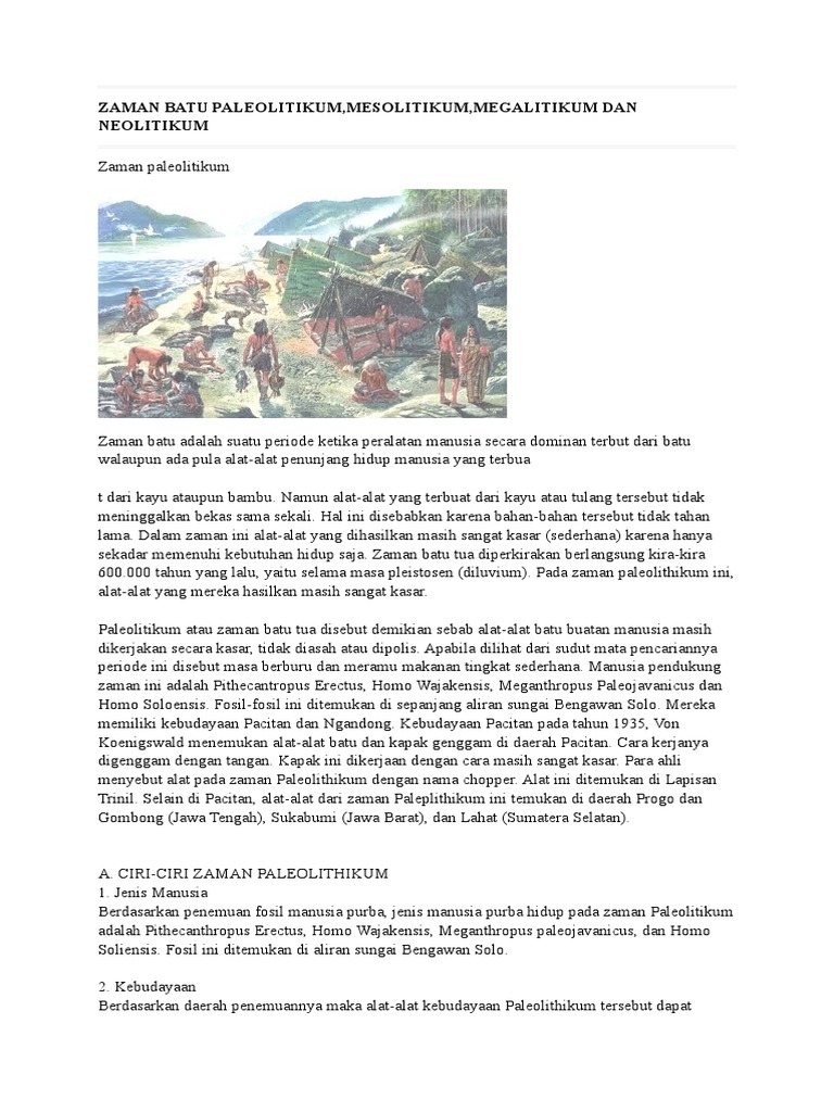 Ciri Ciri Zaman Paleolitikum Mesolitikum Neolitikum Megalitikum