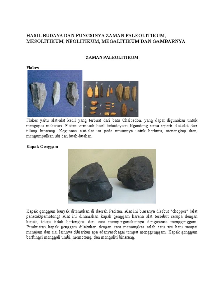 Hasil Budaya Dan Fungsinya Zaman Paleolitikum
