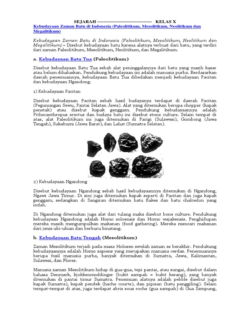 Materi Pelajaran: Kebudayaan Zaman Batu di Indonesia (Paleolitikum, Mesolitikum, Neolitikum dan Megalitikum)